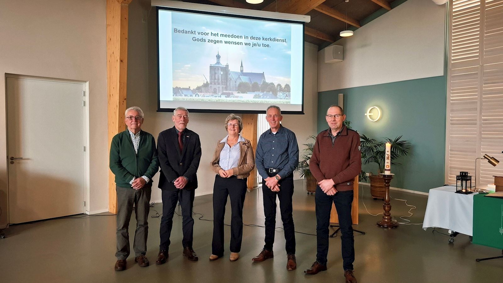 Omdat het aantal ambtsdragers, waaronder ouderlingen, in de loop van de jaren teruggegaan is -en daardoor het werk op minder schouders is komen te liggen- is enige tijd geleden in ons kerkblad Kerknieuws een oproep aan u gedaan om dienst te doen bij uitvaarten (niet als voorganger maar om de voorganger te vergezellen, consistoriegebed te doen). Een vijftal mensen heeft zich daarvoor aangemeld: v.l.n.r. Anne van der Leij, Jan Bremer, Grietsje Stellingwerf, Rienk Harkema en Yde Engelsma. Wat fijn dat jullie zo de taak van ouderlingen willen verlichten!